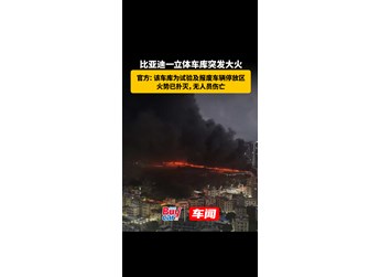 比亞迪一立體車庫突發(fā)大火,官方:該車庫為試驗及報廢車輛停放區(qū),火勢已撲滅,無人員傷亡