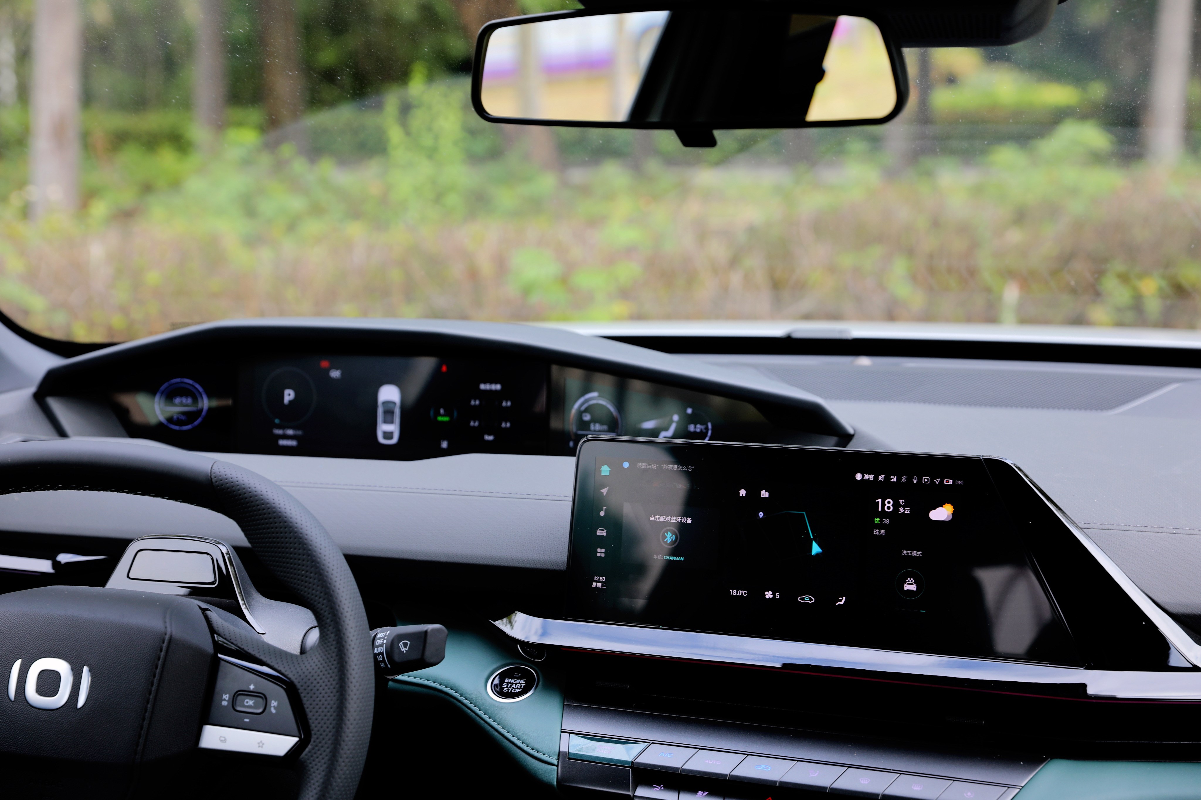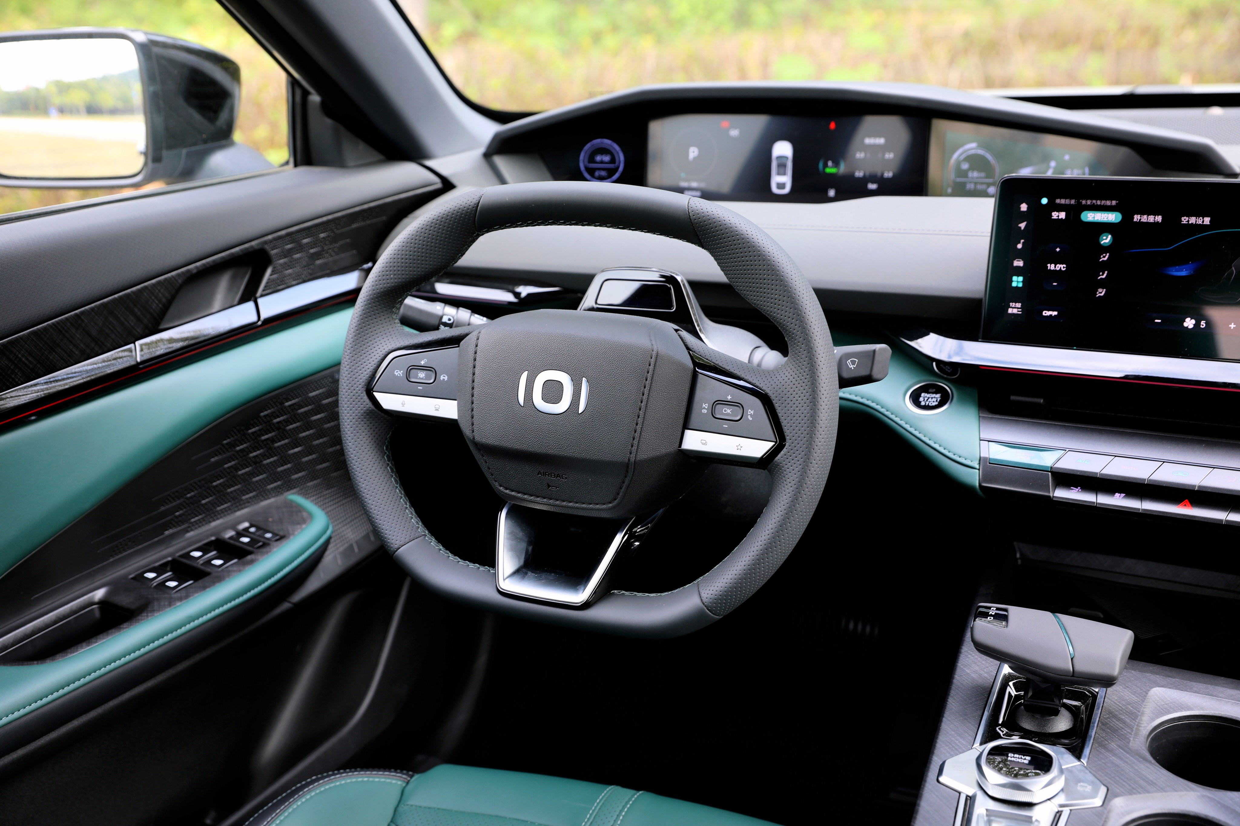 進(jìn)入車(chē)內(nèi),長(zhǎng)安啟源A06座艙風(fēng)格很獨(dú)特,富有層次感的造型讓你第一眼會(huì)感覺(jué)很復(fù)雜,但是仔細(xì)品味一番后,它特殊的風(fēng)格可以說(shuō)是別有一番風(fēng)味。啟源A06提供流沙白和林蹤綠兩種面料配色,個(gè)人更喜歡林蹤綠的配色方案,更能體現(xiàn)出動(dòng)感、時(shí)尚的一面。