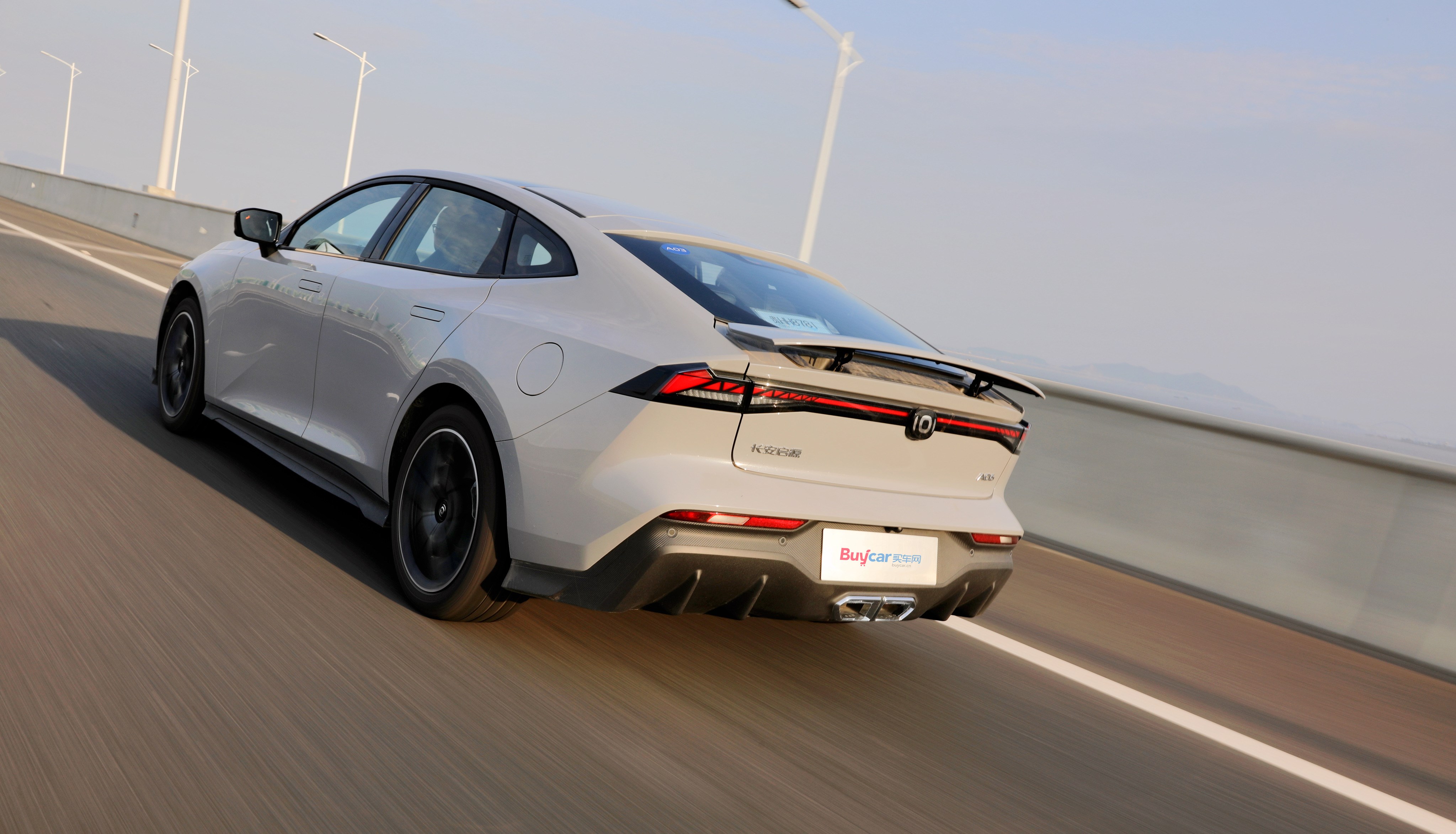 車(chē)尾配備貫穿式LED尾燈、空氣擴(kuò)散套件以及中出雙排尾喉,可電動(dòng)升降的尾翼絕對(duì)算是加分項(xiàng),它不僅能夠幫助啟源A06呈現(xiàn)更戰(zhàn)斗姿態(tài),并且在行駛途中可為車(chē)輛提供最高25kg的下壓力,增加高速行駛時(shí)的車(chē)身穩(wěn)定性。